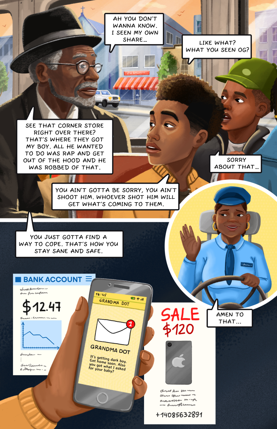Illustrations for the children's comic book “Bus Ride”