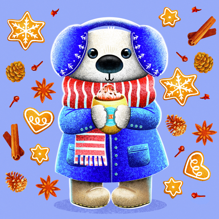 A series of characters has been created to match each new winter drink. I used the signature
