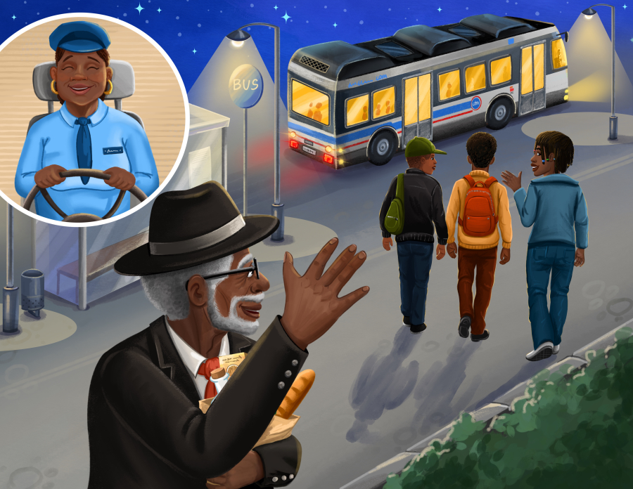 Illustrations for the children's comic book “Bus Ride”